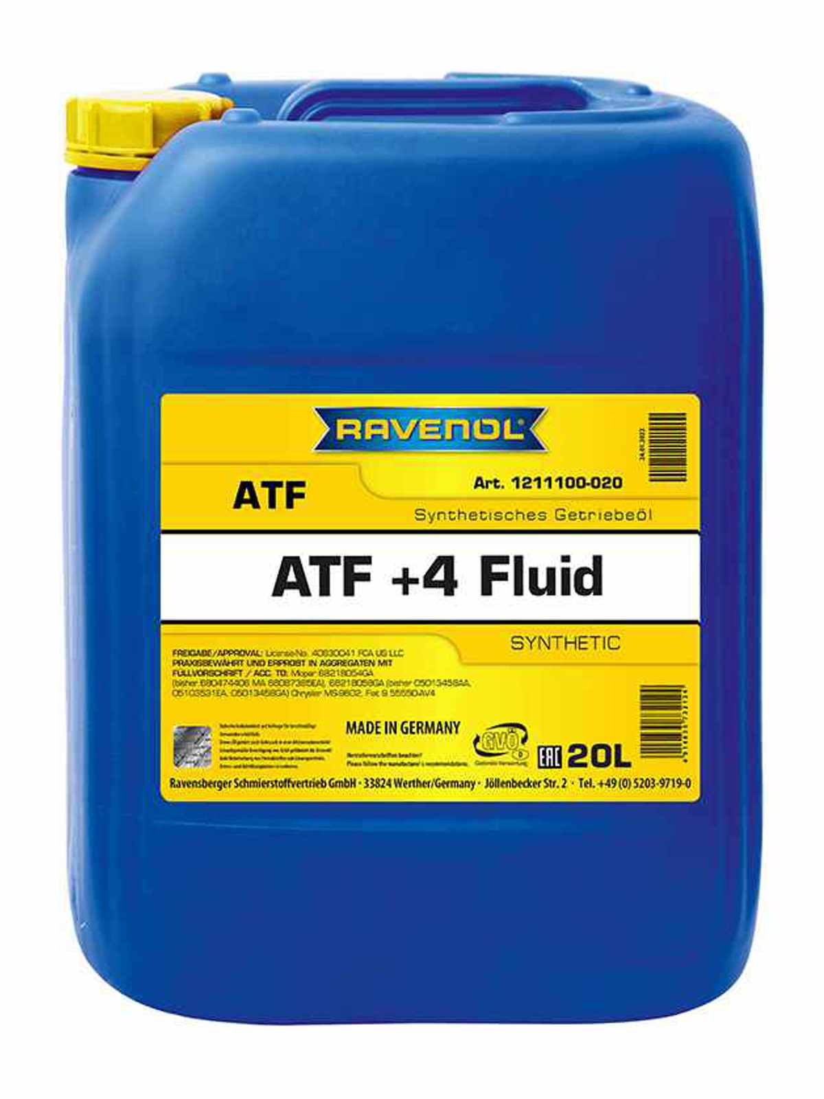 RAVENOL ATF+4 Fluid - синтетическое, произведенное по лицензии трансмиссионное масло для автоматических коробок передач ATF с добавлением специального комплекса присадок для АКПП автомобилей Fiat-Chrysler, Jeep и Dodge.